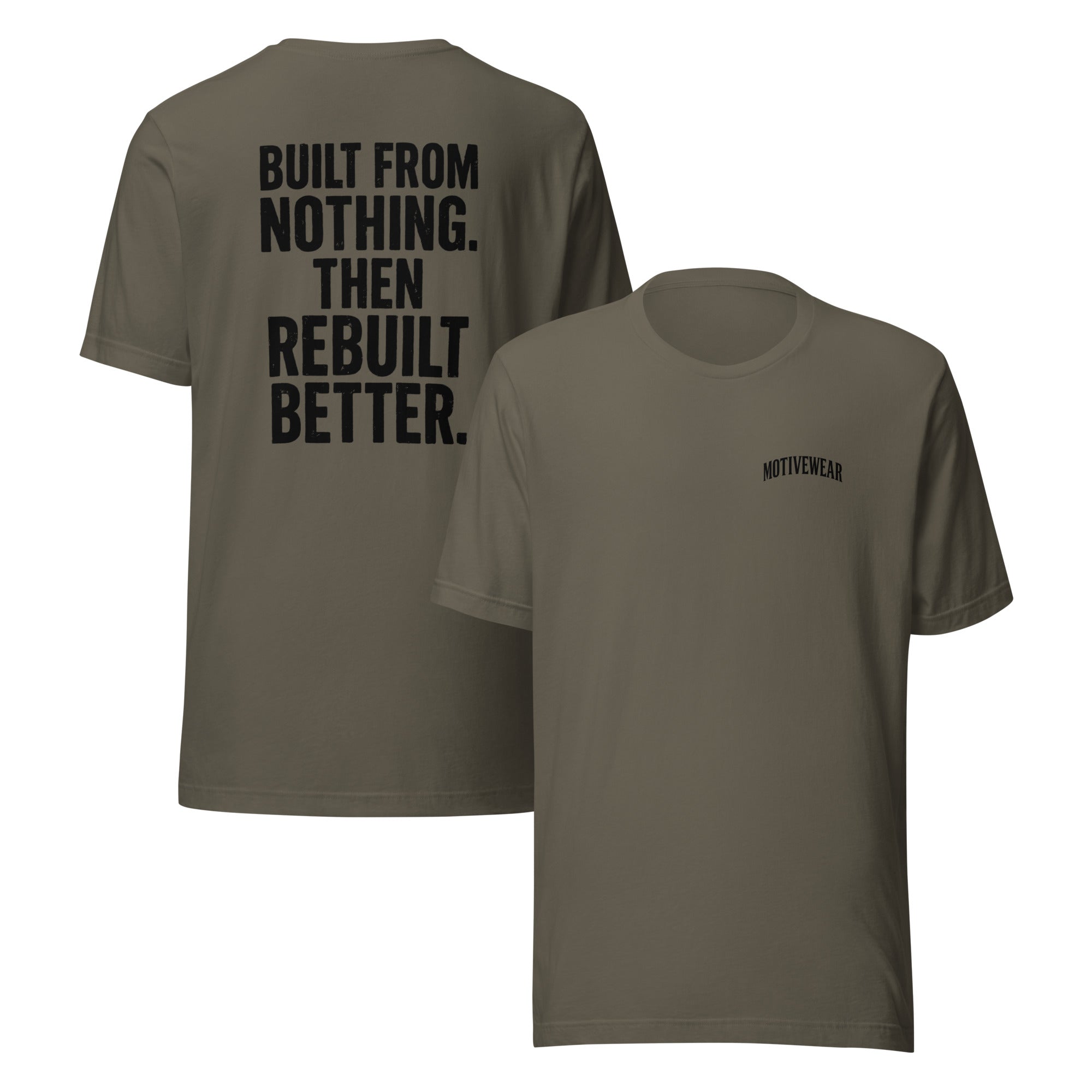 Rock bottom doesn’t break you — it builds you. The “Built From Nothing” Tee is a statement of resilience and rebirth. For those who’ve started over, leveled up, and came back stronger every single time.